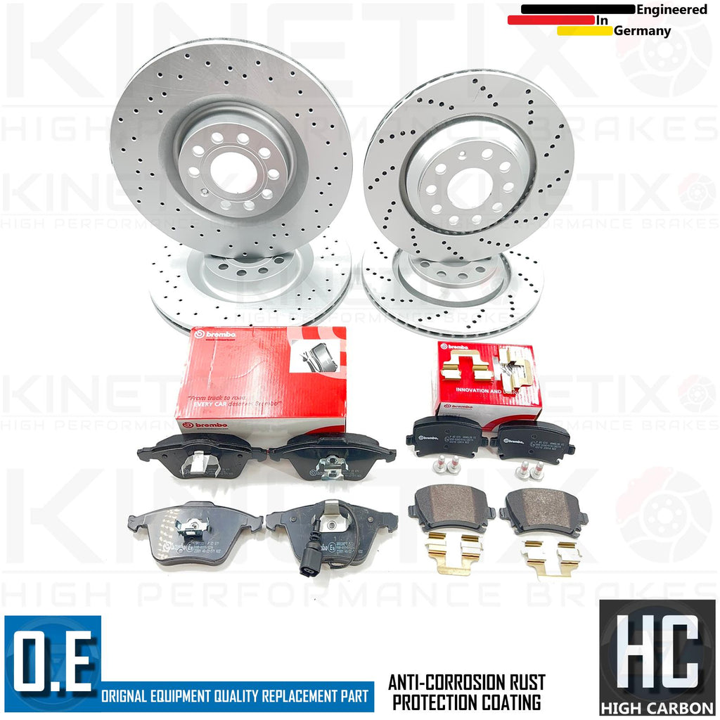 FOR AUDI S3 8P CROSS DRILLED FRONT REAR BRAKE DISCS BREMBO PADS 345mm 310mm