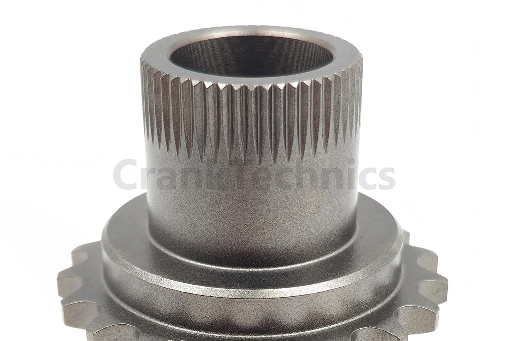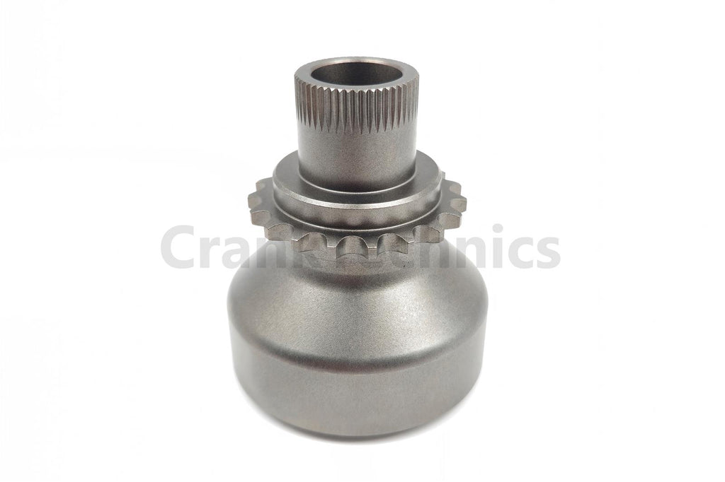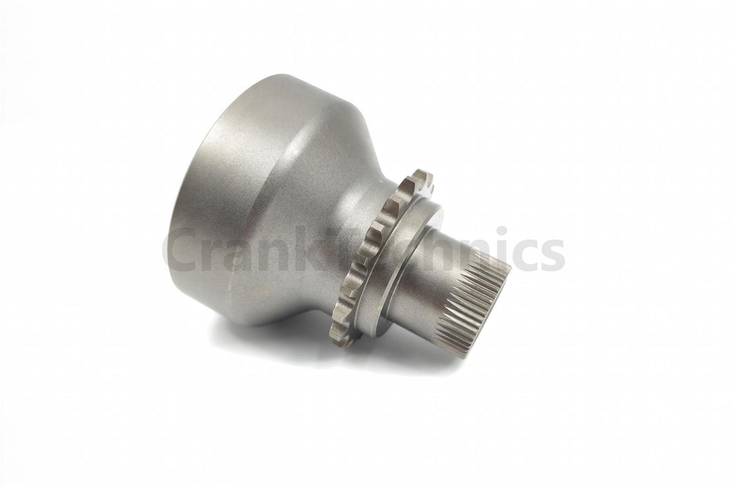 The cranktechnics upgraded hub incorporates proprietary spline Lock technology, boasting machined splines that seamlessly integrate into the crank, firmly securing the hub in place.