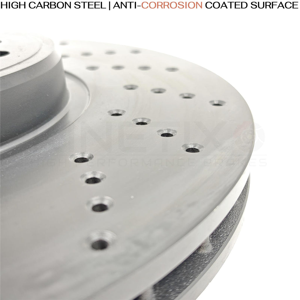 Manufactured from premium high carbon steel for superior strength, heat resistance, and reduced brake noise.