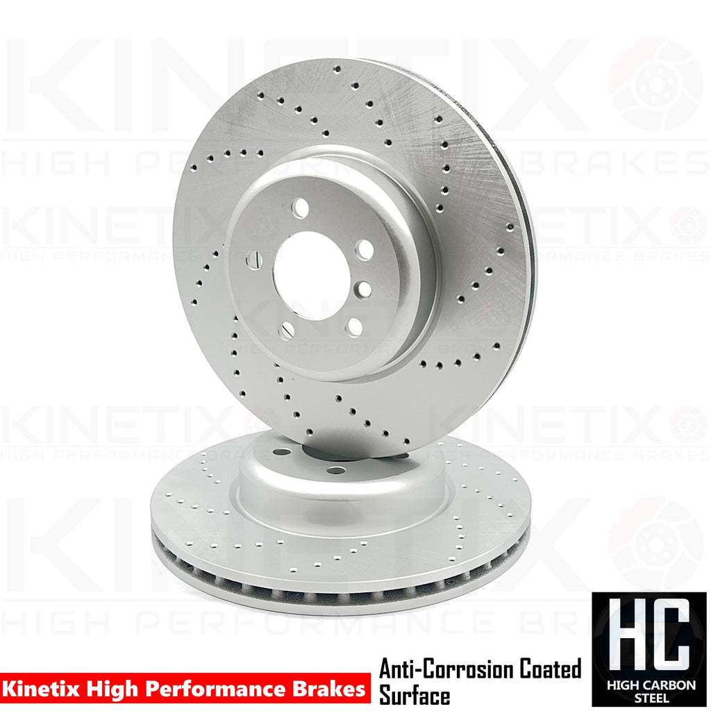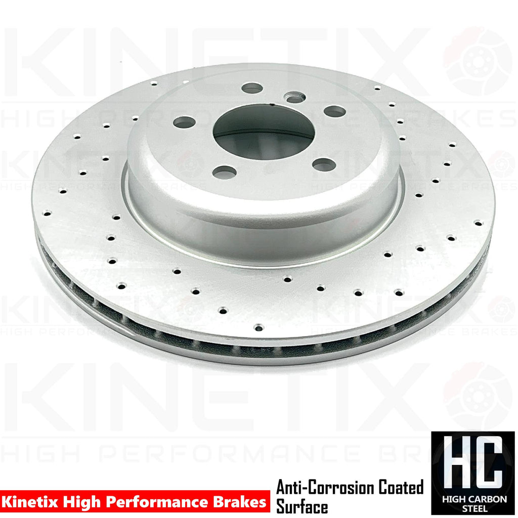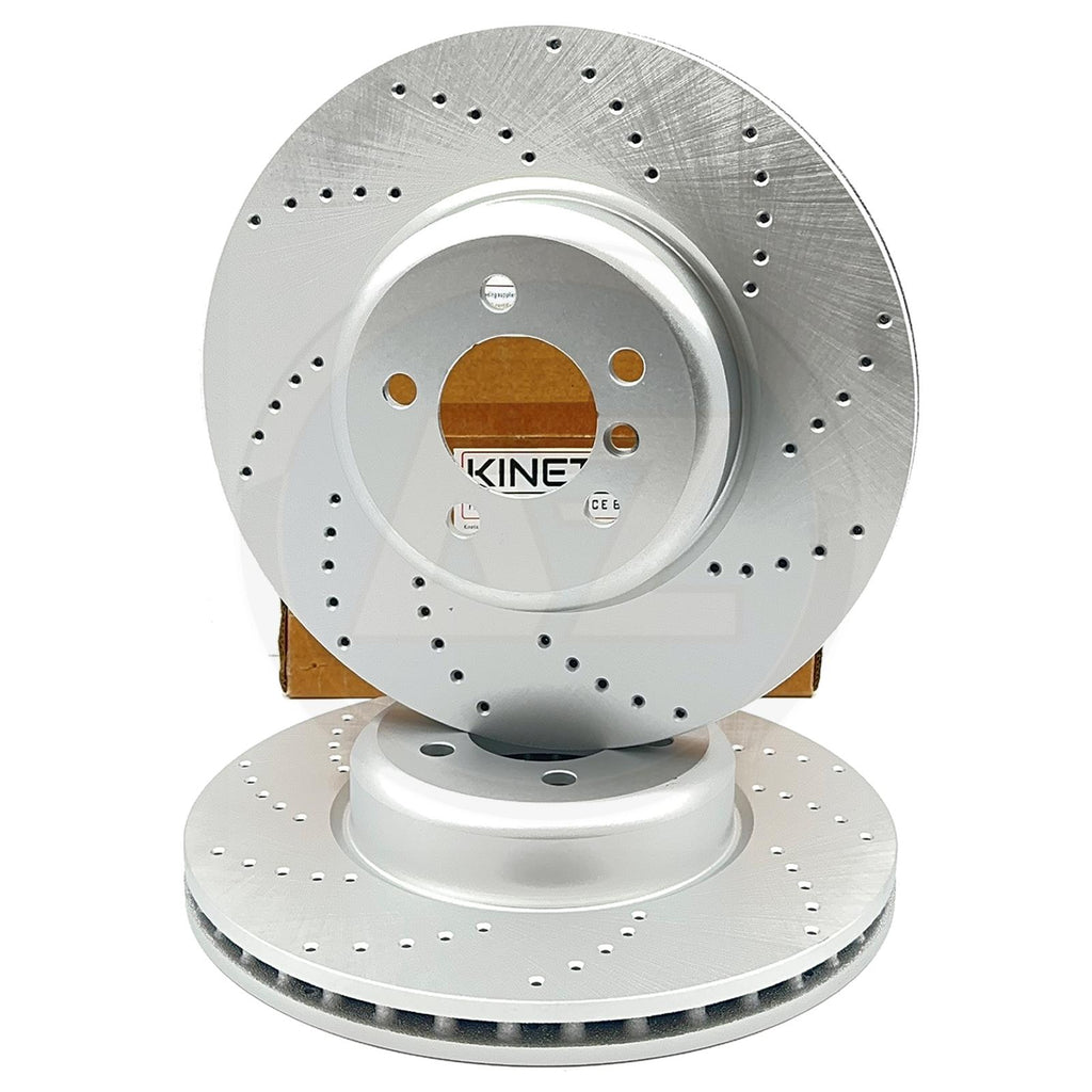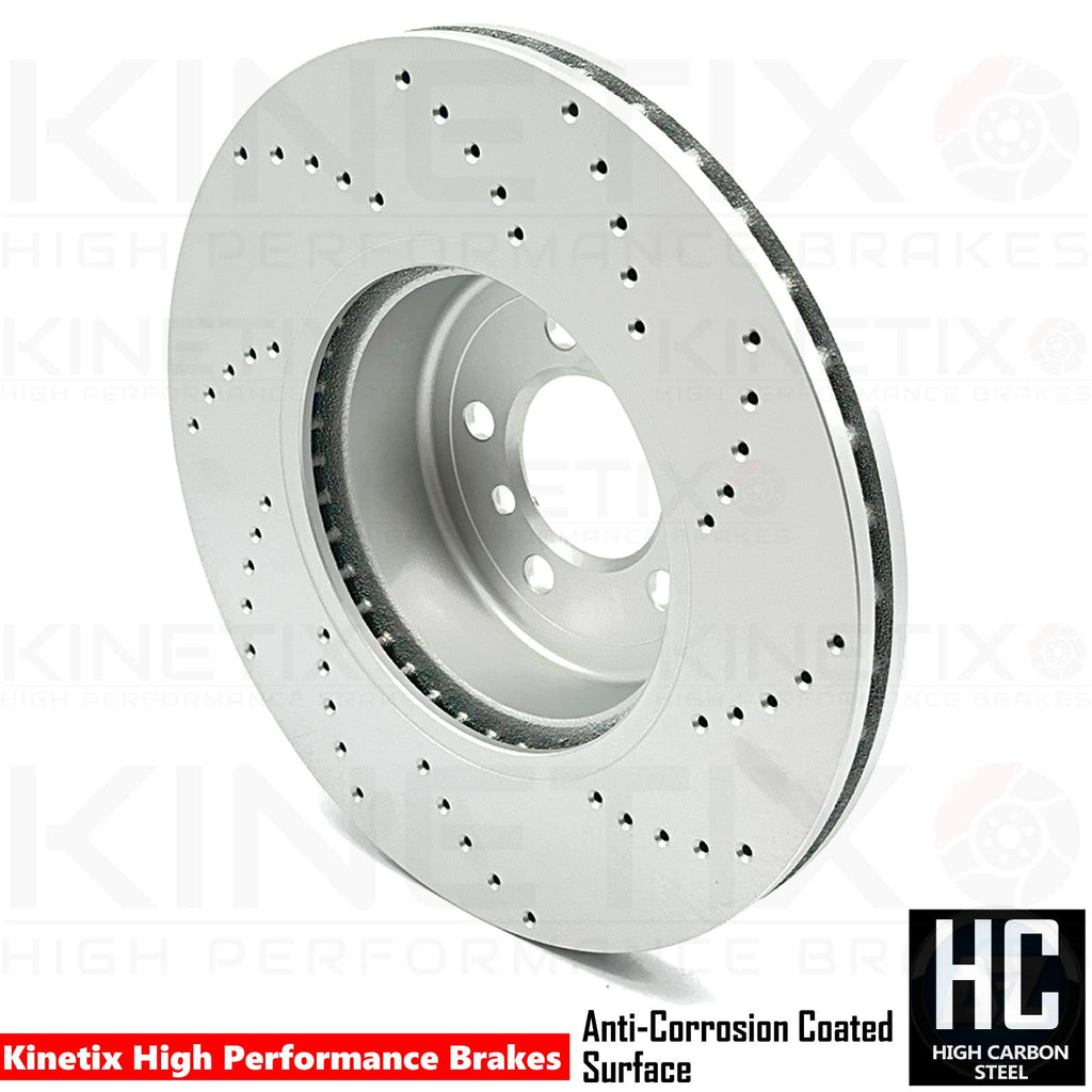 Brake gas build up is a major problem when braking at high speeds which effectively causes brake fade. The drilled disc surface on the kinetix brake discs dissipate heat more effectively by breaking down surface gases more efficiently. The holes are laser drilled through the discs which reduce brake mass. The drilled brake discs also benefit from keeping braking temperatures rapidly low which helps keep the pad surface from reaching high temperatures that can be caused from hot surface gasses.