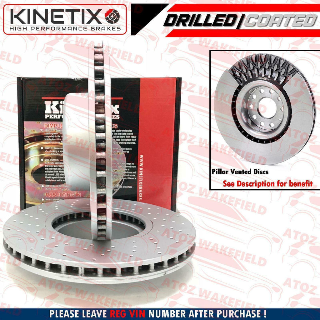 Brake gas build up is a major problem when braking at high speeds which effectively causes brake fade. The drilled disc surface on the kinetix brake discs dissipate heat more effectively by breaking down surface gases more efficiently. The holes are laser drilled through the discs which reduce brake mass. The drilled brake discs also benefit from keeping braking temperatures rapidly low which helps keep the pad surface from reaching high temperatures that can be caused from hot surface gasses.
