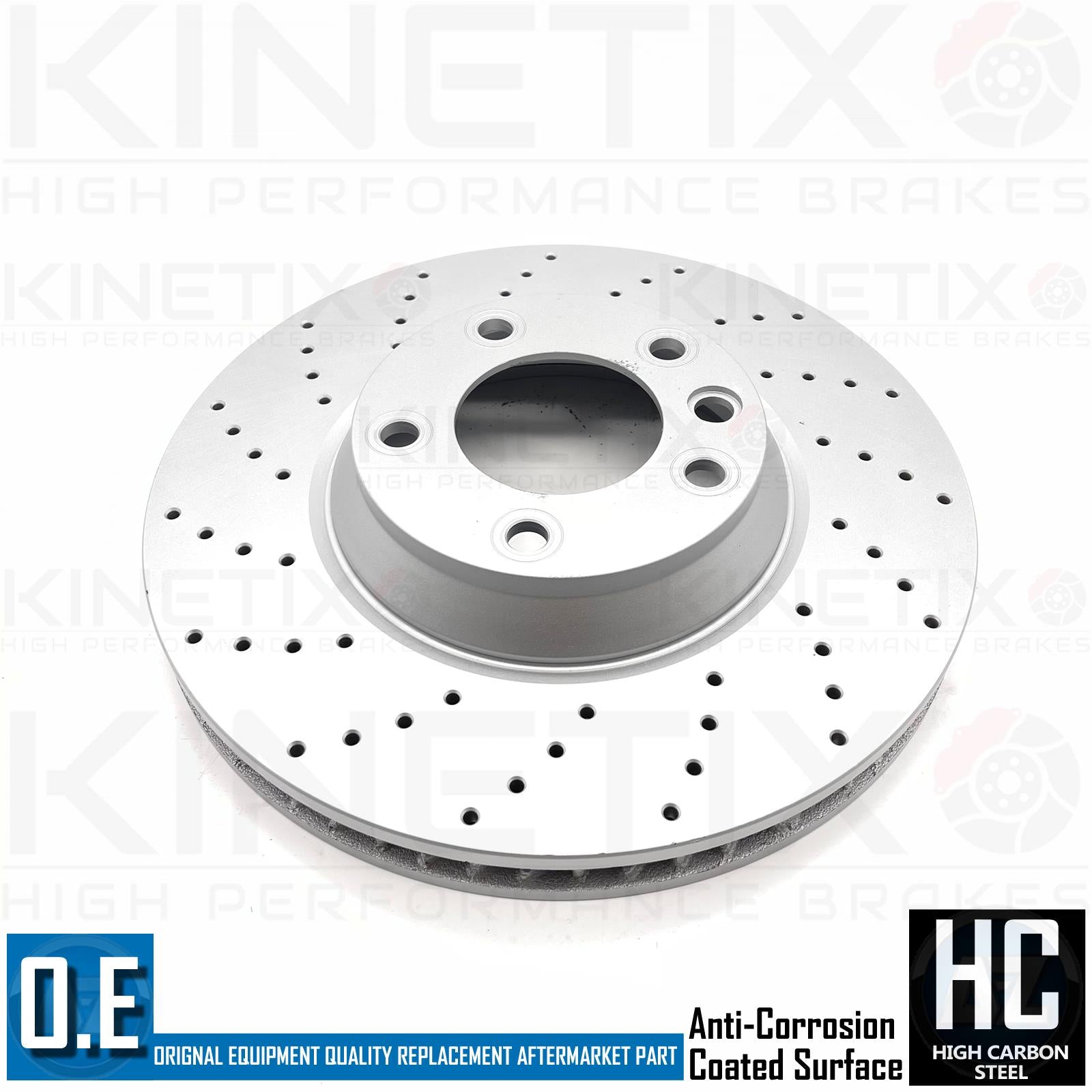 The presence of the cross drilled holes leads to greater air circulation, resulting in improved heat dissipation capability and its increased performance.