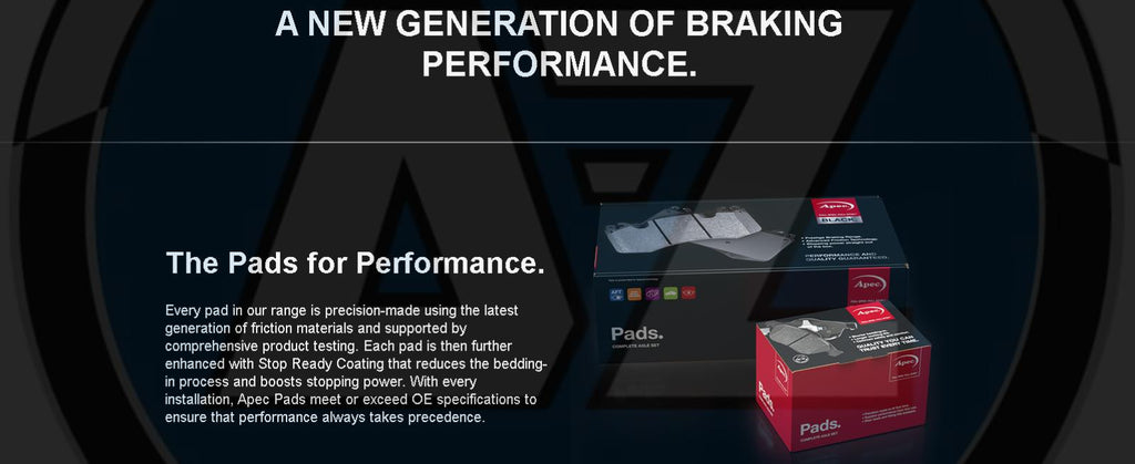 Every pad in our range is precision-made using the latest generation of friction materials and supported by comprehensive product testing. Each pad is then further enhanced with Stop Ready Coating that reduces the bedding-in process and boosts stopping power. With every installation, Apec Pads meet or exceed OE specifications to ensure that performance always takes precedence.