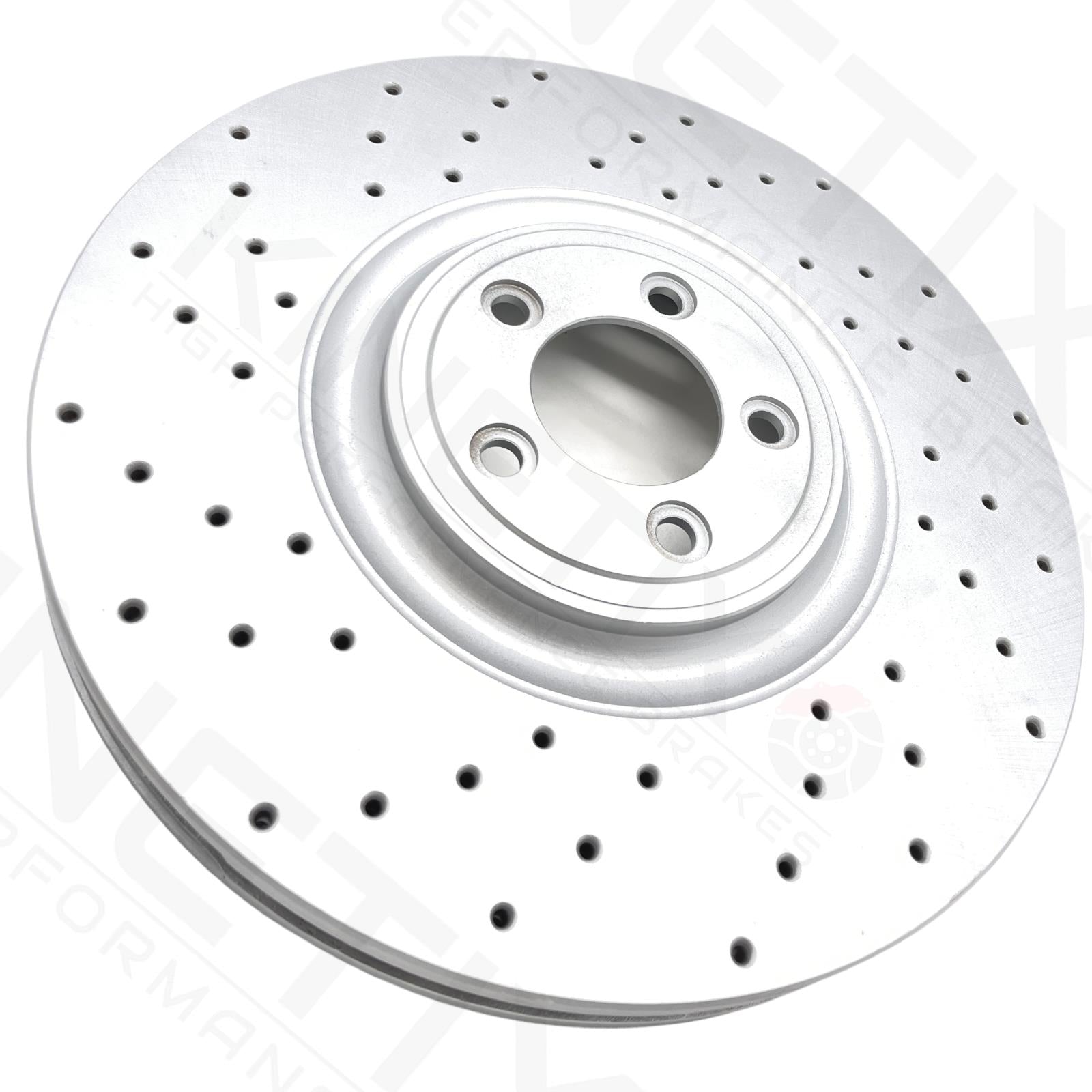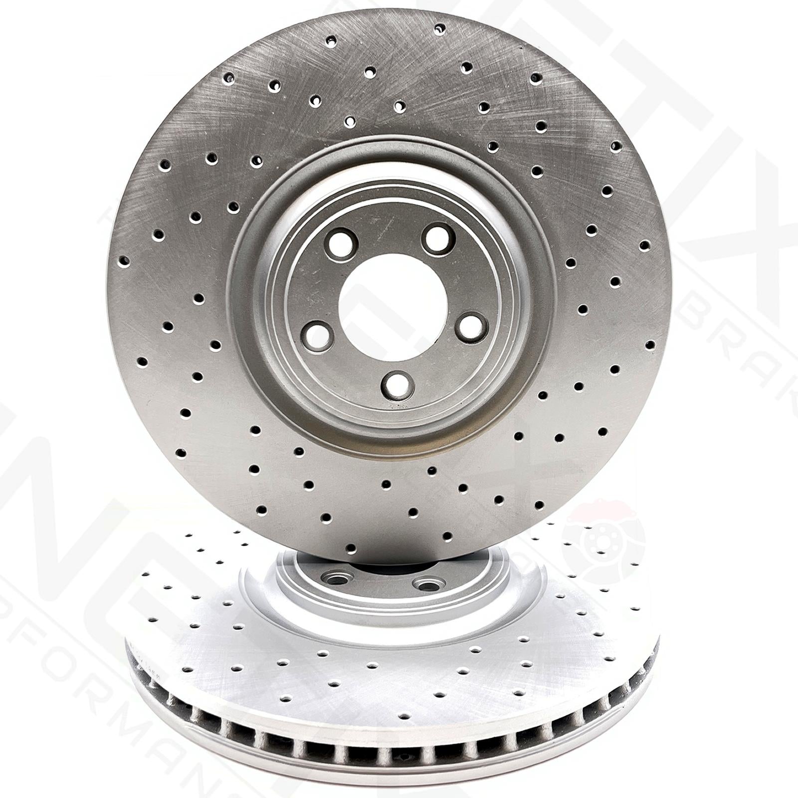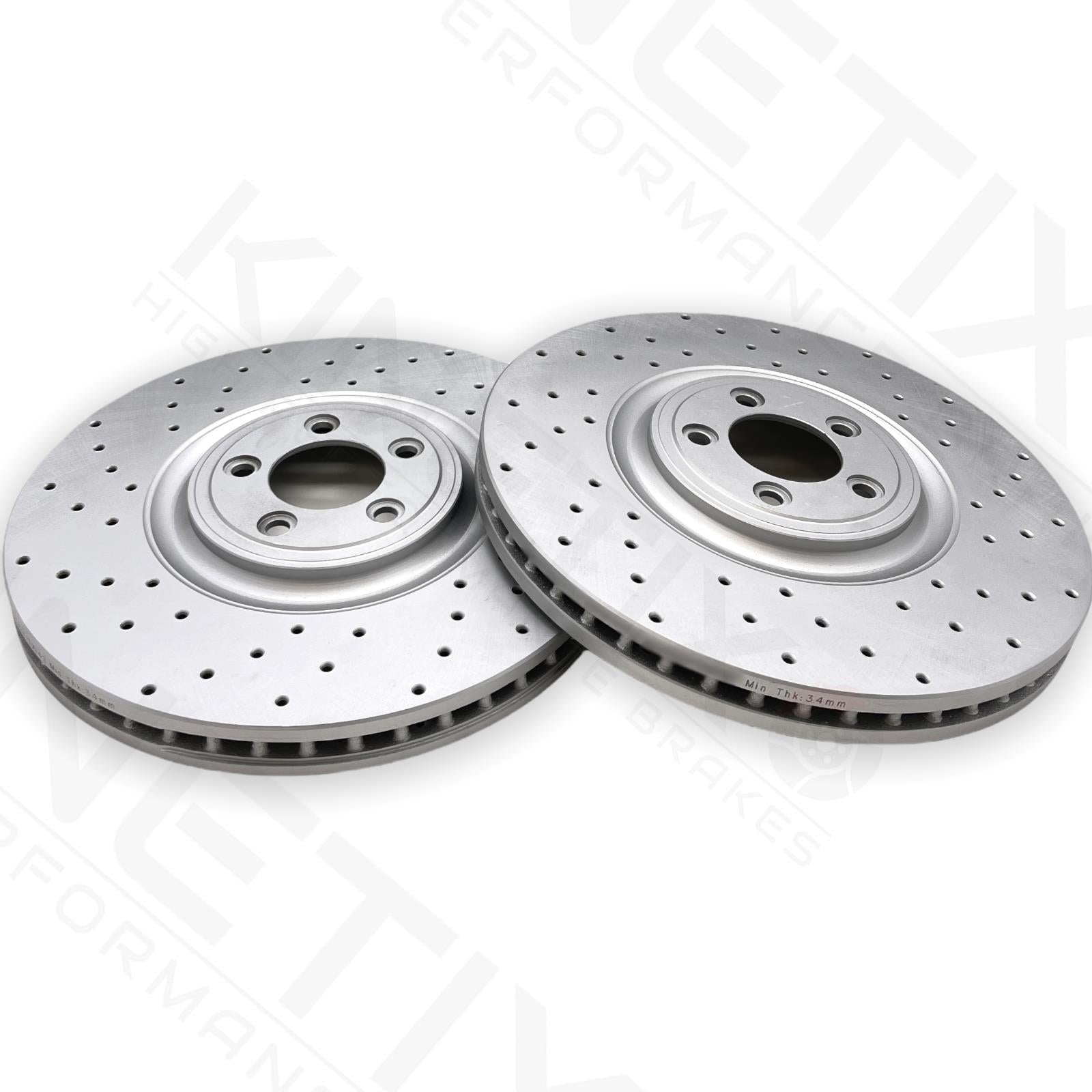FOR JAGUAR F-TYPE 5.0 SCV8R SVR CROSS DRILLED FRONT BRAKE DISCS PAIR 380mm