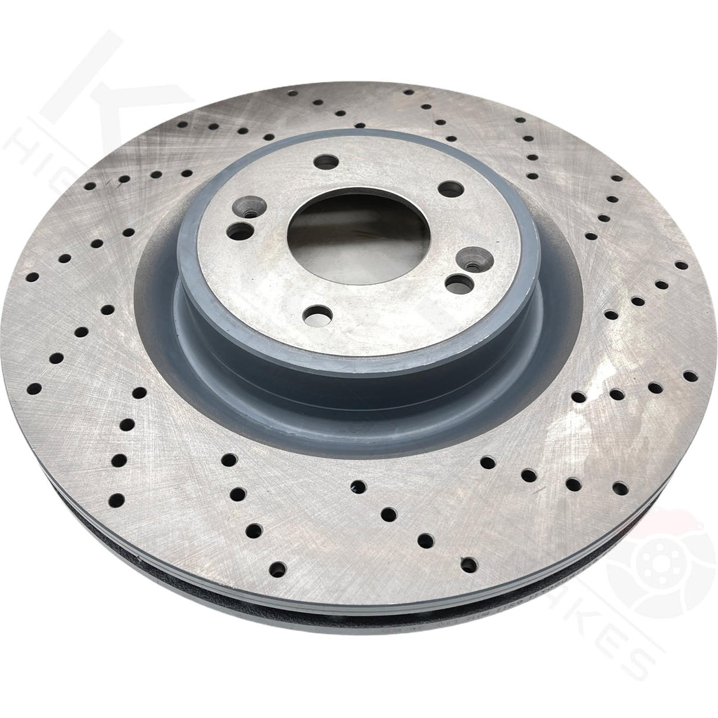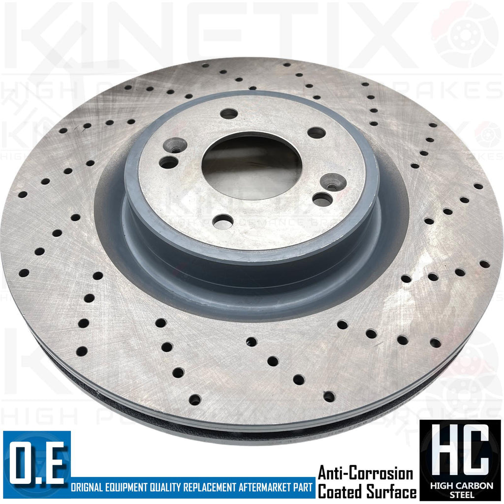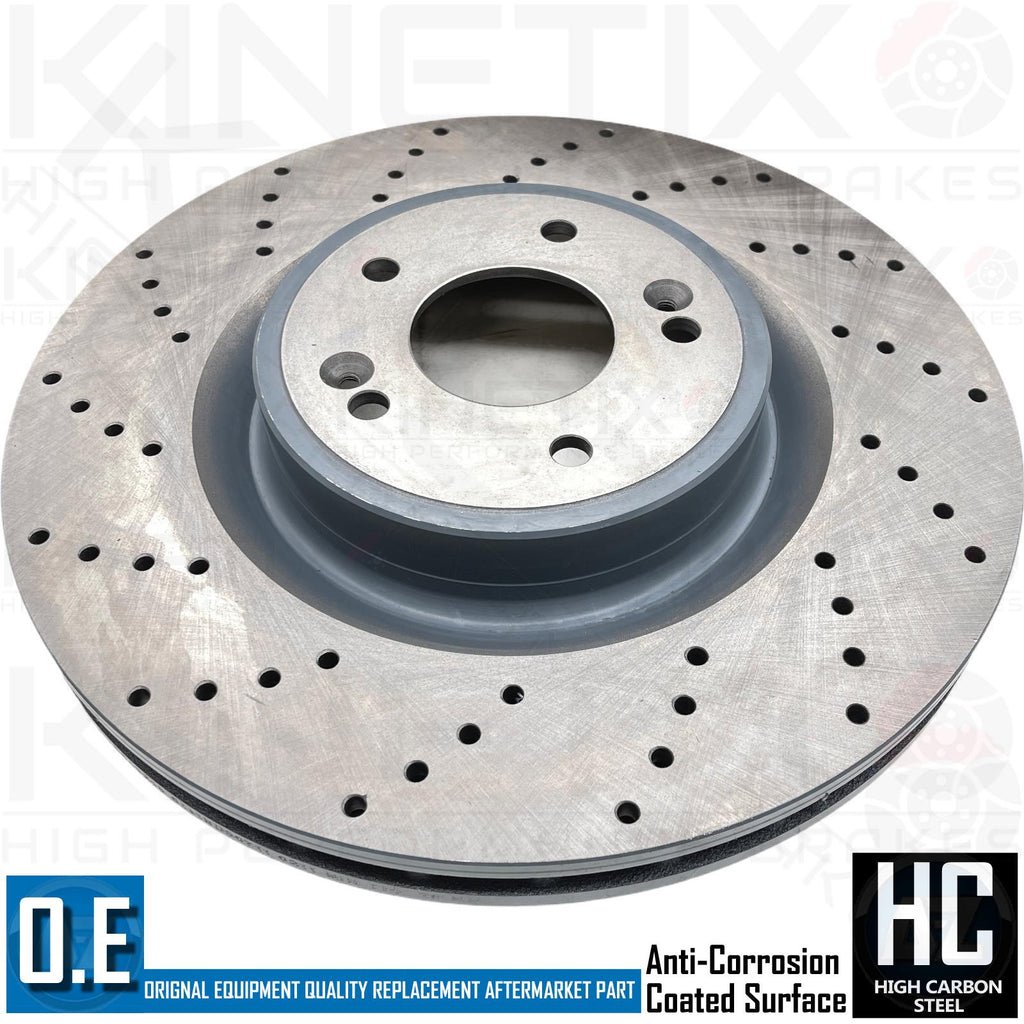 FOR KIA STINGER 2017- FRONT PERFORMANCE CROSS DRILLED BRAKE DISCS PAIR 350mm