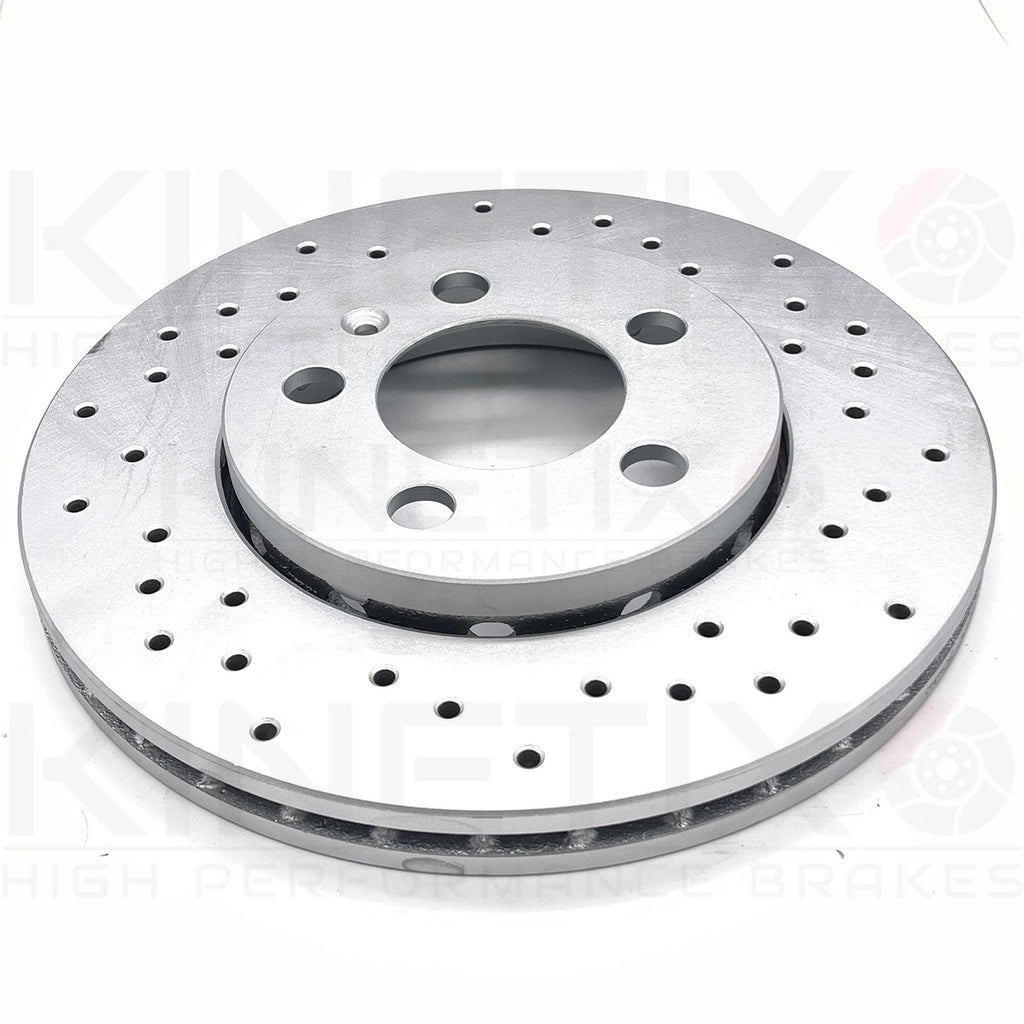Cross drilled discs keep your braking system cooler, thus reducing brake fade.